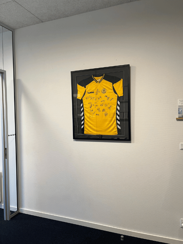 En indrammet fodboldtrøje holder sig flot i mange år og bliver et unikt element i indretningen. Når trøjen kommer i en ramme, beskytter du stoffet mod sollys, støv og slid, så farver og detaljer bevares bedst muligt. Det gør det muligt at have trøjen hængende fremme uden at bekymre sig om, at den tager skade.