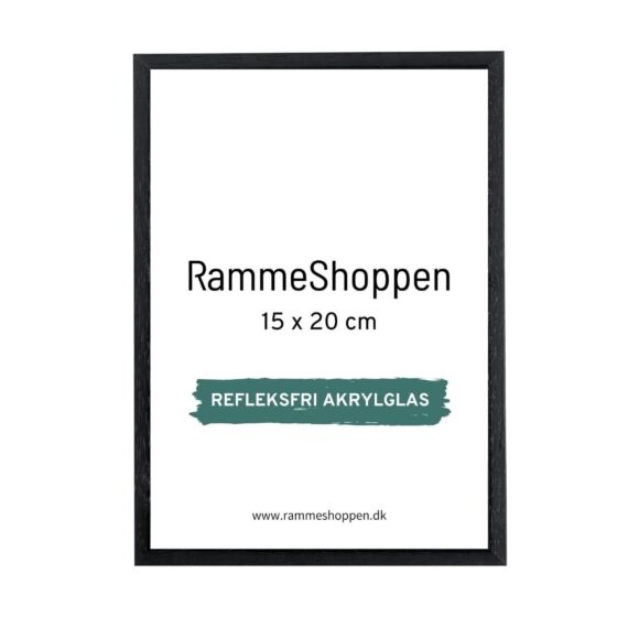 Sort træramme, refleksfri, smal, 15 x 20 cm, Type 840