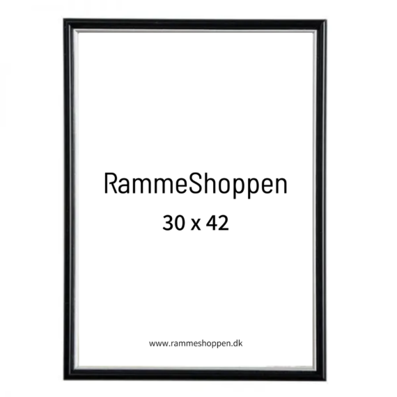Sort ramme med sølvkant, polywood, 30 x 42 cm, A3, Type 7303