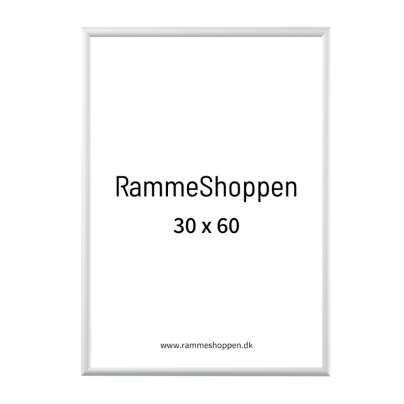 Hvid aluramme, blank, smal, 30 x 60 cm, Type 9006