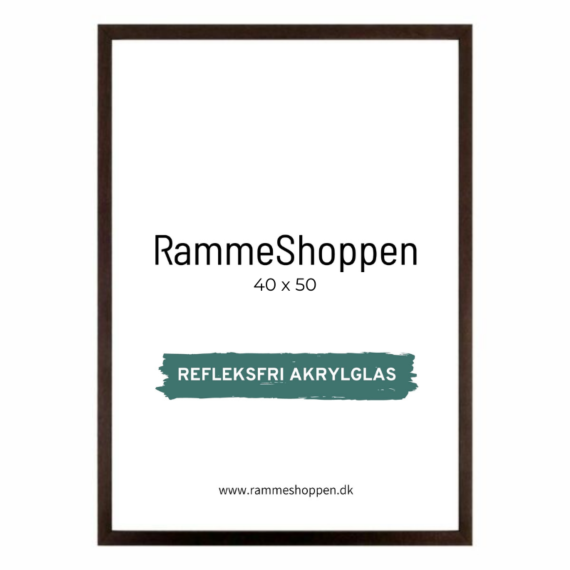 Mørk brun træramme, refleksfri, smal, 40 x 50 cm, Type 830