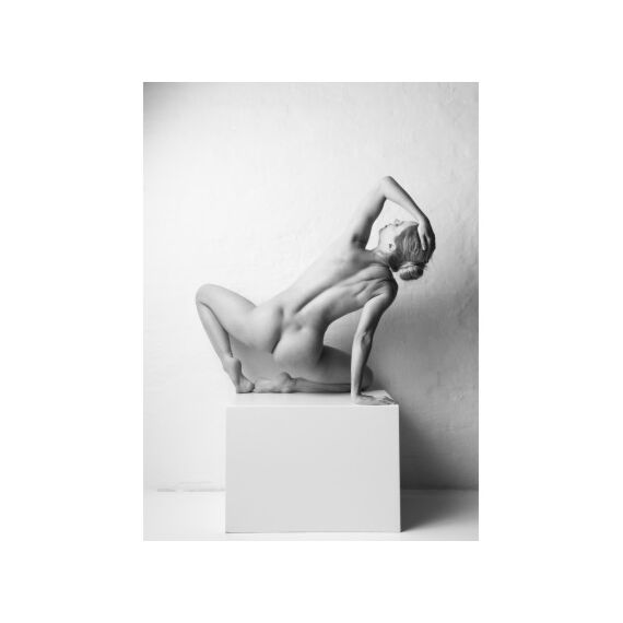 Motiv med smukt billede af kvindekroppen på piedestal i en kunsterisk fortolkning. Fyldt med elegance og samtidig ærligt og uden filter.