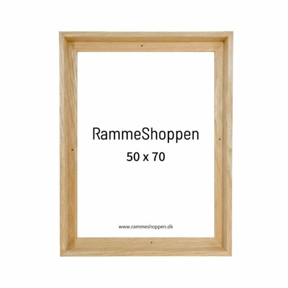 Svæveramme i massiv egetræ til malerier i størrelse 50x70 cm. En moderne indramning til malerier, hvor motivet skal fremhæves med et flot svævende ydtryk.